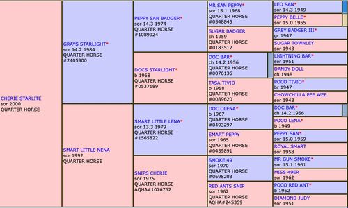 Cherie has $3,707 LTE and $4,056 PE. Dam has $13k LTE and $18k PE. Second dam (1975 model) has $532,234 PE.